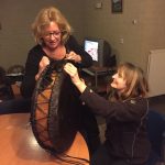 Nadat ze in juli 2013 is overleden, is haar huid indertijd door Jos Heerkens geprepareerd in Brabant. Door zijn overlijden is haar huid terecht gekomen in Engeland bij drumbouwer Nicci Antoinette (www.shamandrums.net) Daar heb ik haar opgezocht en het frame van Afrikaans hout bewerkt. Toen is Renske haar huid doorgereisd naar de Dordogne in Frankrijk. En maandag en dinsdag 19 en 20 januari heb ik de drum uiteindelijk gebouwd onder leiding van Nicci en met hulp van Chantal Loonen in Brabant. Destijds wilde ik liever niet ingaan op het signaal om haar huid te behouden en nu ben ik zo dankbaar! Dank voor degenen die bij dit hele intense gebeuren betrokken zijn geweest met hun zorgvuldigheid, vakkundigheid en betrokkenheid. Met name grote dank voor Sven Goedbloed die bij het hele proces aanwezig is geweest, zodat dit met respect voor Renske is gebeurd. Ze leeft sowieso voort in mijn hart. En nu wordt ze weer aanraakbaar. Dat is bijzonder. Kan echt uitzien naar haar bijdrage op de sjamanistische dagen. De eerstvolgende Natuur in Beweging/Sjamanistisch werk met paarden staat gepland op 21 maart.