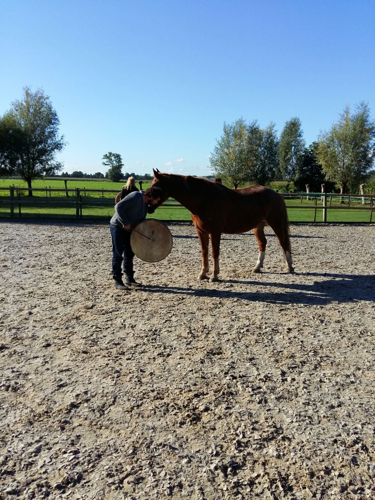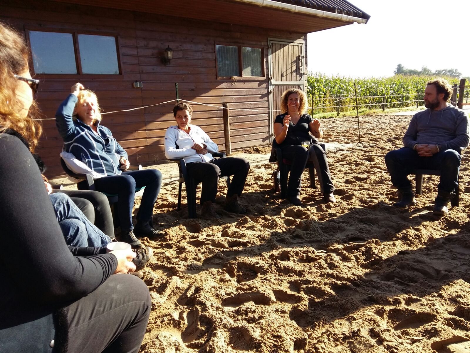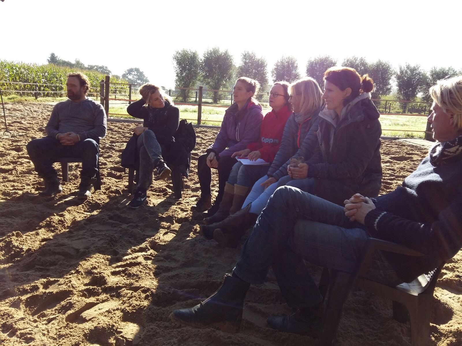 Afgelopen vrijdag en zaterdag veelal zonovergoten hebben de cursisten van de vervolgopleiding SWP kunnen ervaren wat het is om in het collectieve ‘grote’ alwetende veld te werken. Met dank aan de gastdocenten Sven en Sara van In the heart of change die hun kennis en kunde deelden en samen met Coby in de driehoek begeleidden. Met dank aan de mede opleider Folkert die er als achtervang voor de cursisten was. En natuurlijk met grote dank aan de paarden, muizen, kraaien, buizerds, ree en al die dieren die hun bijdrage geleverd hebben. Met de kracht van de natuur-wetten voorbij de woorden. En wat een prachtig moment in de tijd waarop dit werk samenviel met de volle maan die ons bij lichtte bij het vuur en wonderschoon rood kleurde vannacht. Het universum dat de integratie zeker stimuleert. Het was een cadeau. Bijzonder en krachtig! Ben stil en dankbaar en wens vele mensen deze vorm van begeleiden toe.