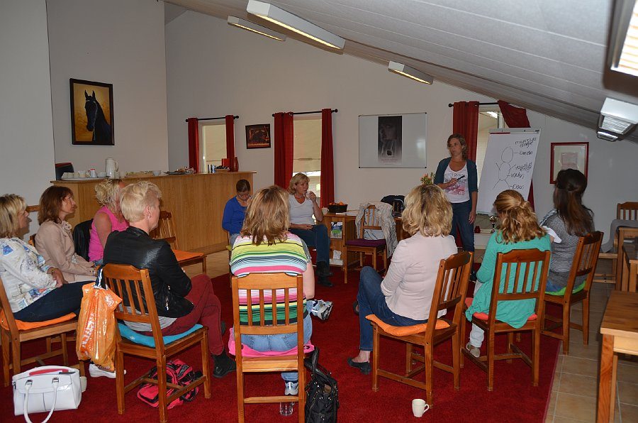 In de ochtend starten we met theoretische kaders. Waarom Vrouwelijk leiderschap en wat wil jij hierin ontwikkelen? Daarna onderzoeken we wat jouw afweermechanisme is. Dus hoe doe jij de dingen wanneer het spannend wordt? Vlucht je, ga je vechten, of bevries je? Na het theoretische deel gaan we kennismaken met Jasper en/of Gerarda. Dit zijn Friese paarden die graag met mensen werken. We gaan tijdens deze oefening ervaren middels de werkvorm systemisch werken met paarden. Het werken met paarden brengt zonder woorden op gevoelsniveau inzicht en volbewustzijn in het hier en nu. Zij spiegelen puur, zonder oordeel, in dienst van het geheel. Waar we als mensen vaak woorden nodig hebben, kom je via het paard direct tot de kern. Dat zorgt voor heelwording en zorgt ervoor dat je keuzes hebt in het leven. De cohesie door een kleine groep zorgt voor een veilige warme omgeving om jezelf te kunnen laten zien. Wil jij ontdekken hoe jij beweegt in Vrouwelijk Leiderschap?
