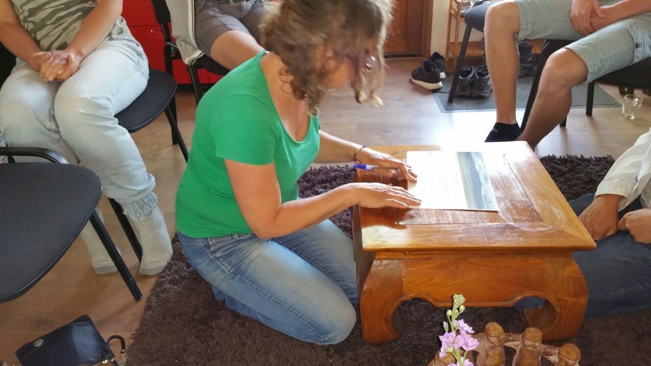 Het viel Coby op dat Sophie vooral ging zorgen. Ze wilde dat de paarden het goed hadden. Twee andere paarden waren inmiddels ook voor Sophie gaan liggen. De paarden ademde zwaar en kreunde. Coby vroeg Sophie een pion voor “de zware last” in de paddock op te stellen. Op dat moment stond de hengst van de kudde op om de jongste merrie in beweging te brengen. Coby nodigde Sophie uit een kommetje van haar handen te maken. Toen Sophie haar zorgen in het kommetje deed en aan de “pion” gaf, werd duidelijk dat Sophie uit balans was doordat zij uit loyaliteit de last van haar oma droeg. Zodra dit uitgesproken was, stonden alle paarden op, ze ontspande zich door weer gewoon te gaan ademen, hun ontlasting los te laten en te gaan eten.